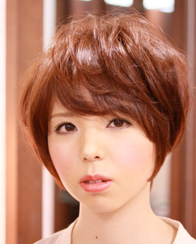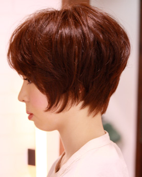 SHORT STYLEツヤ髪ショート 今流行のショートスタイル、トップにリラックスパーマでダメージさせずにふんわりパーマかけカラーはスーパーヌーディーカラーのベージュ系ブラウンでツヤ感UP! 優しくやわらかいイメージになります。誰からも愛されるショートスタイルです。