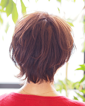 可愛さと色っぽさを合わせたようなショートスタイル。サイドの髪を耳にかけることで女性らしいバランスになります。